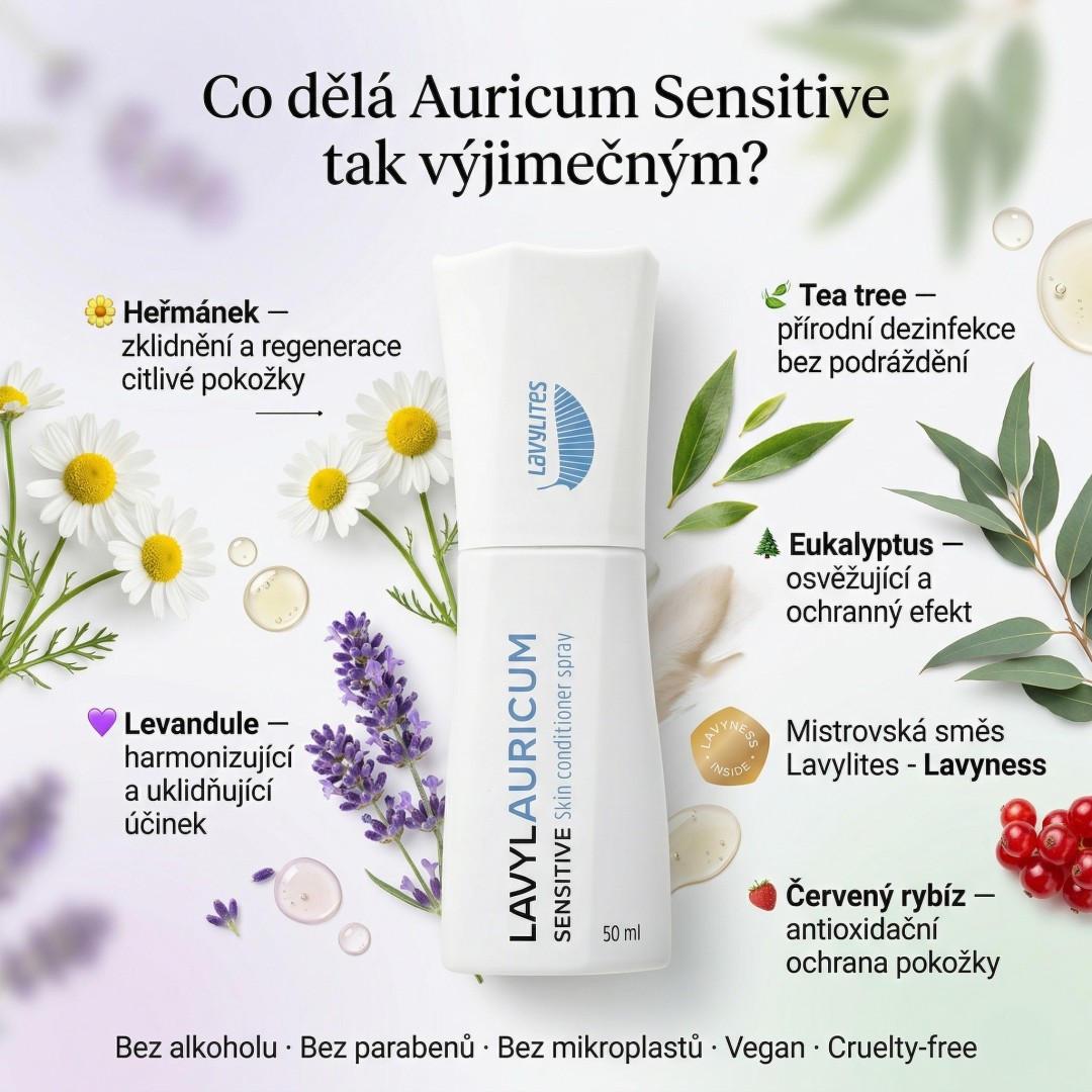Lavyl Auricum Sensitive is made from carefully selected natural ingredients. In addition, they are all purely plant-based and not tested on animals. So the product proudly carries the vegan and cruelty-free labels. It naturally does not contain GMO ingredients, artificial dyes, synthetic perfumes, parabens, microplastics or other potentially harmful ingredients.