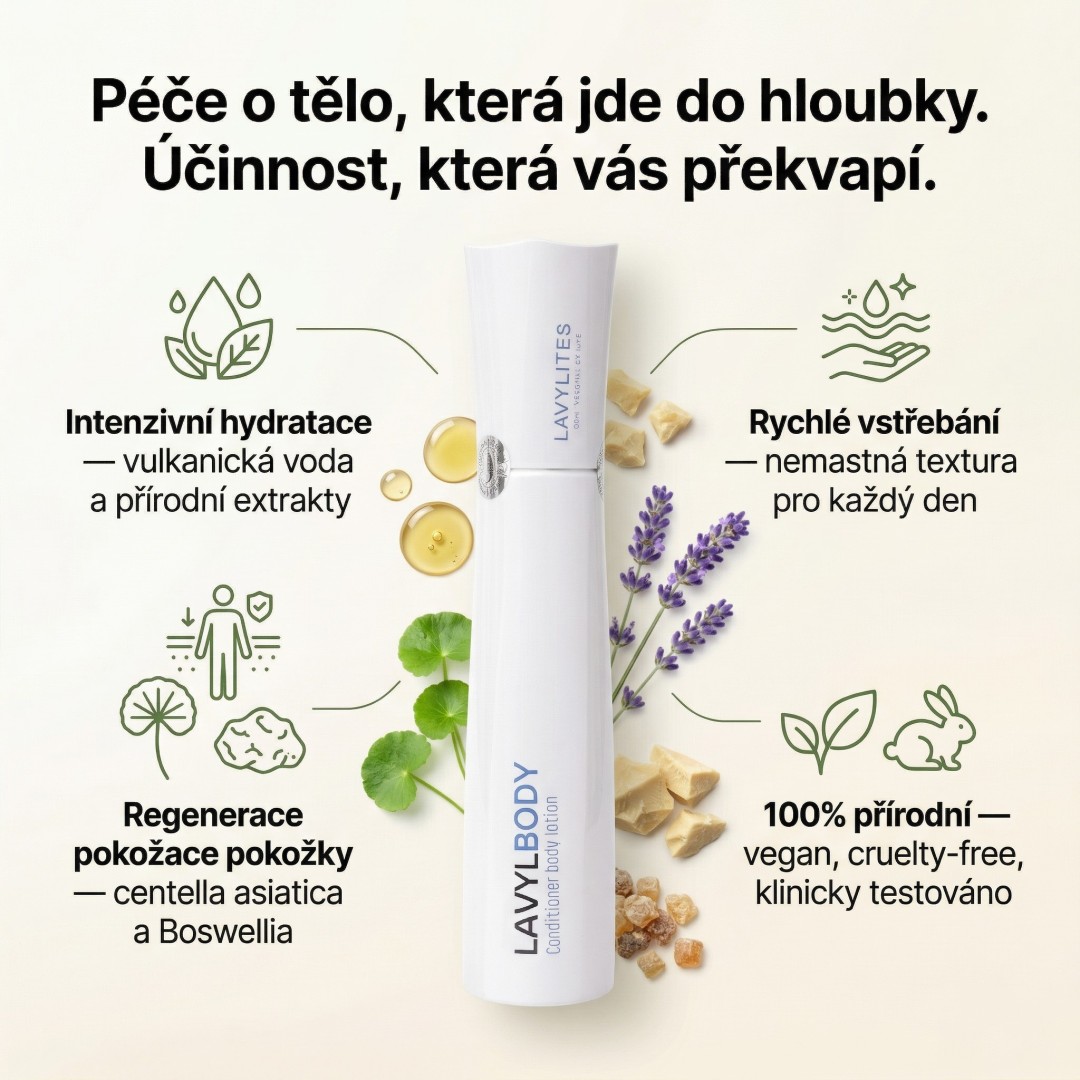 Lavyl Body je kosmetický výrobek s mimořádnými hydratačními a regeneračními účinky. Jedná se tedy o kosmetický přípravek, který slouží k ochraně a regeneraci těla a jeho pokožky.